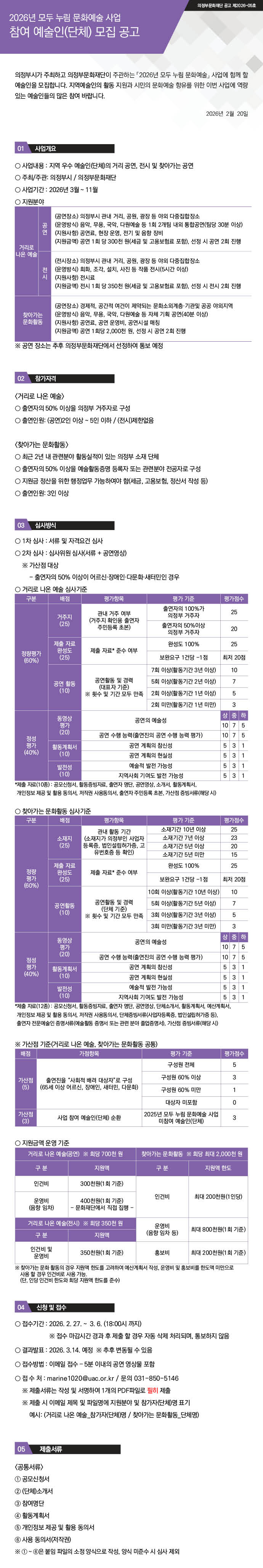 2026³â ¸ðµÎ ´©¸² ¹®È¿¹¼ú »ç¾÷ - Âü¿© ¿¹¼úÀÎ(´Üü) ¸ðÁý °ø°í
